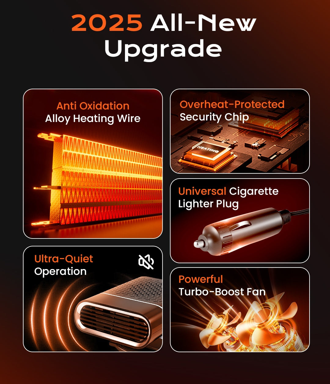 QUICK DEFROSTING & HEATING: Featuring an anti-oxidation alloy heating wire, this car heater provides warm air in just 30 seconds. It rapidly removes frost, fog, and moisture from your windshield, side windows, and rear window, giving you a clear view for driving and ensuring a warm cabin during winter.