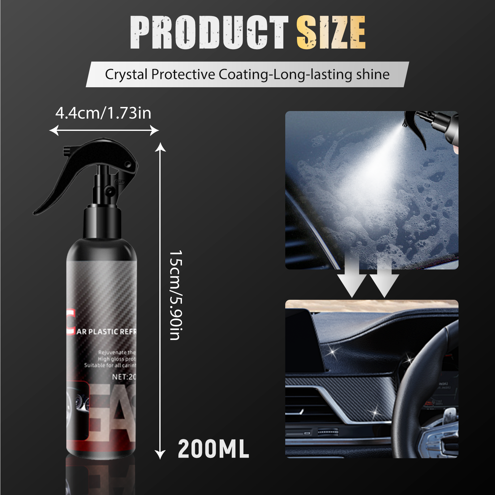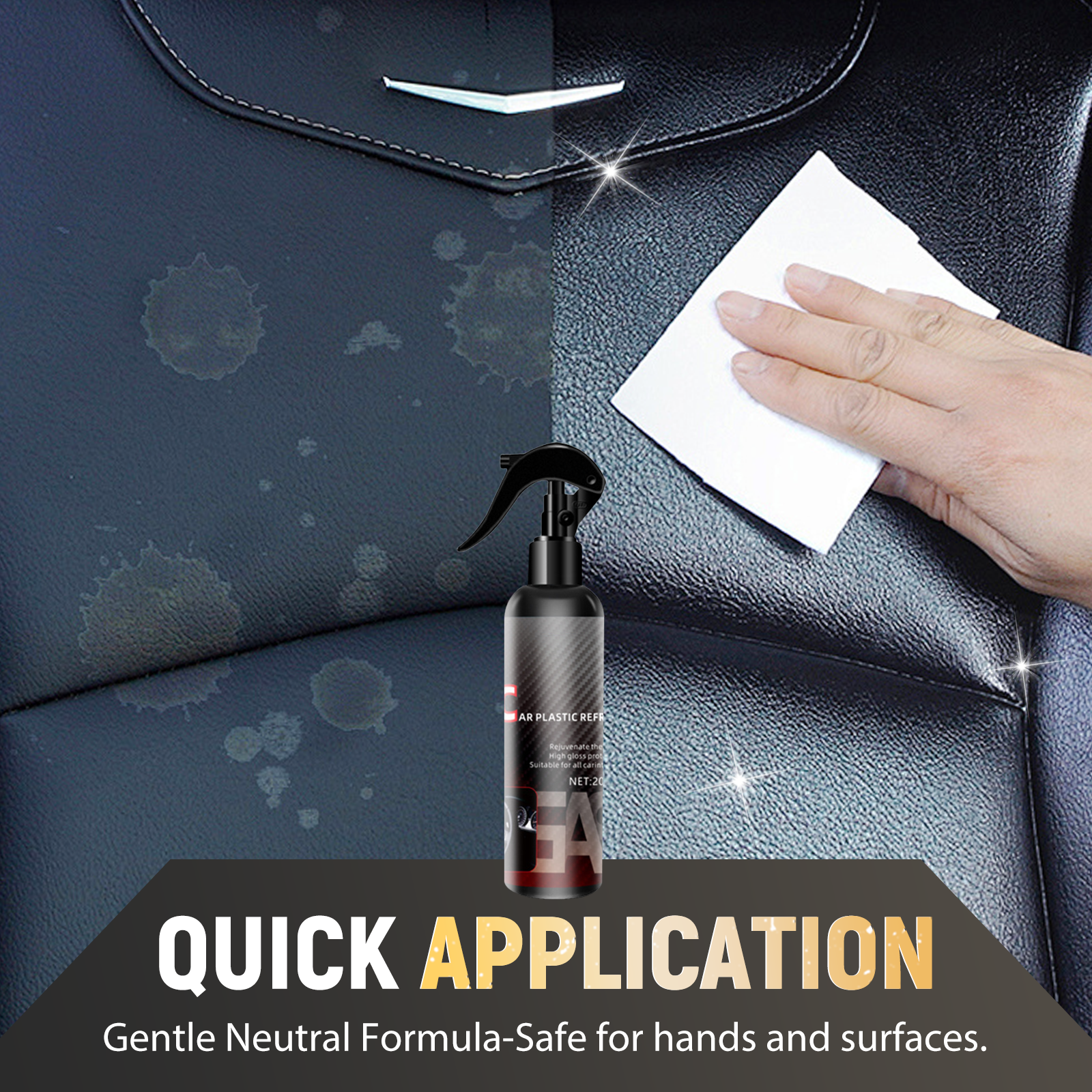 QUICK AND EASY APPLICATION FOR CONVENIENT USE: The spray bottle design allows for easy and precise application. Simply spray the cleaner onto the plastic surface, wipe with a clean cloth, and you're done. The formula works quickly, saving you time and effort. The compact size is also convenient to carry in your car, allowing you to freshen up your vehicle's plastic parts anytime, anywhere.