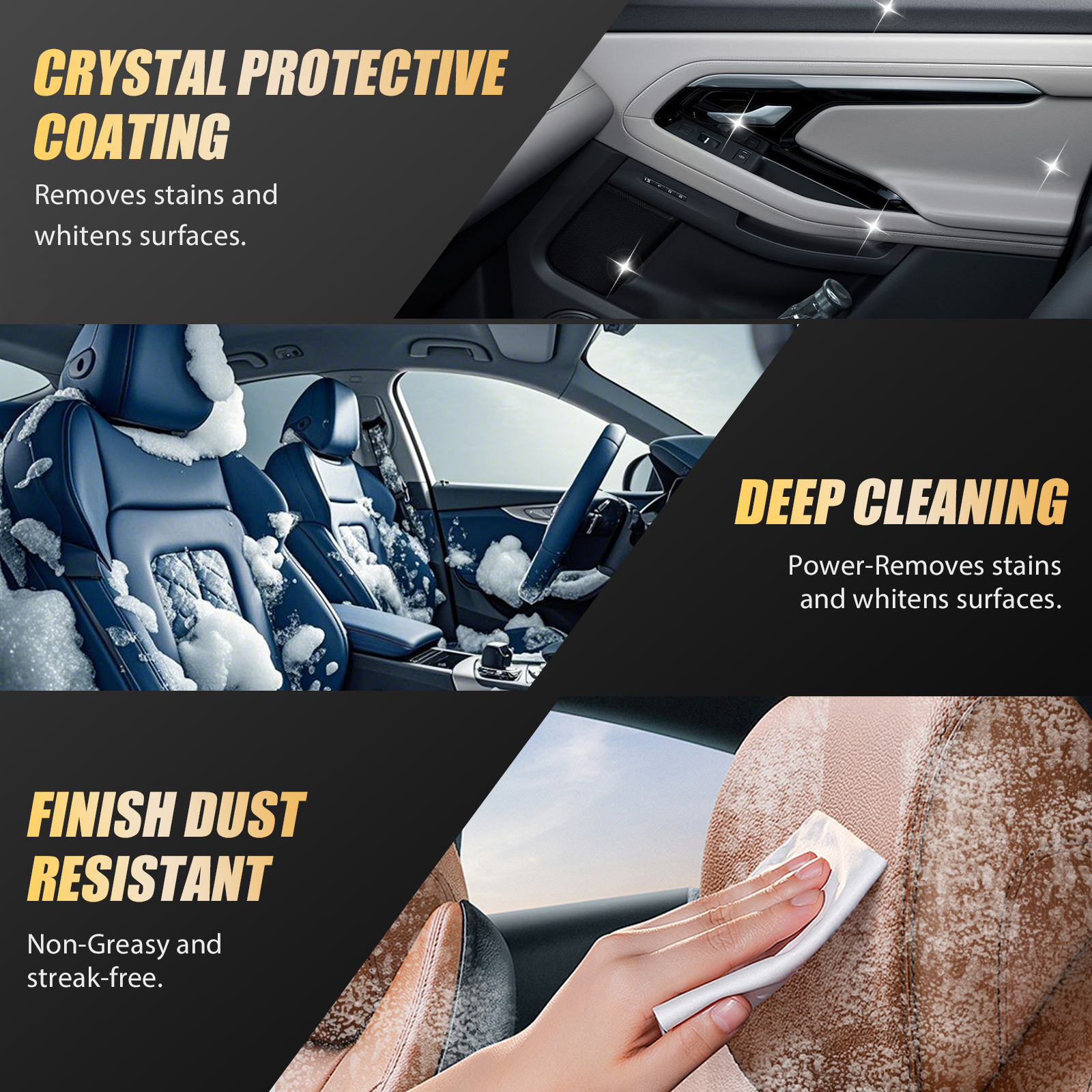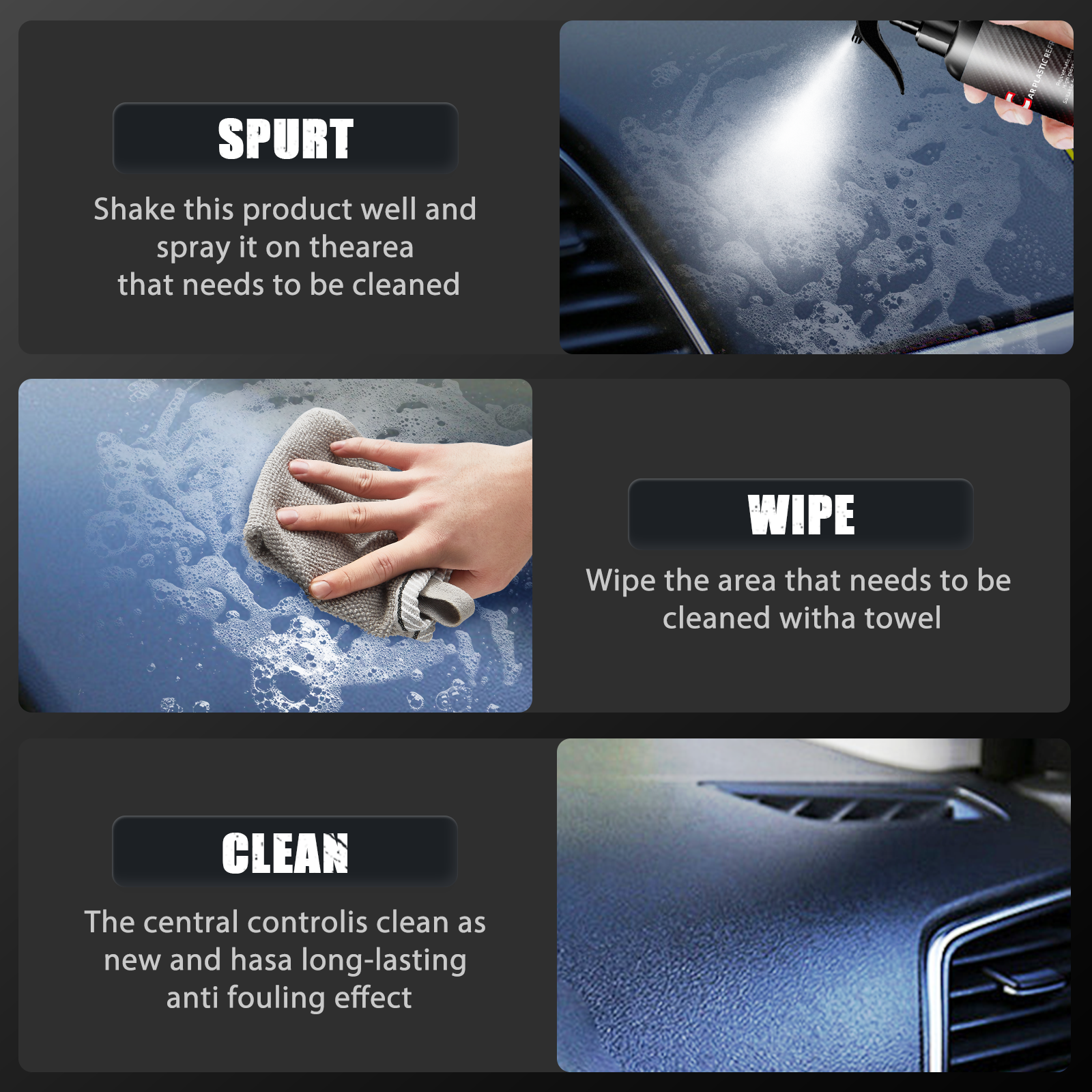 NON-GREASY AND DUST-RESISTANT FINISH: Unlike some cleaners that leave a greasy residue, this Interior Cleaner For Car provides a clean, non-greasy finish. The surface remains smooth and easy to touch, without attracting dust or dirt. This means your car's interior will stay cleaner for longer, reducing the frequency of cleaning and maintaining a fresh, dust-free environment.
