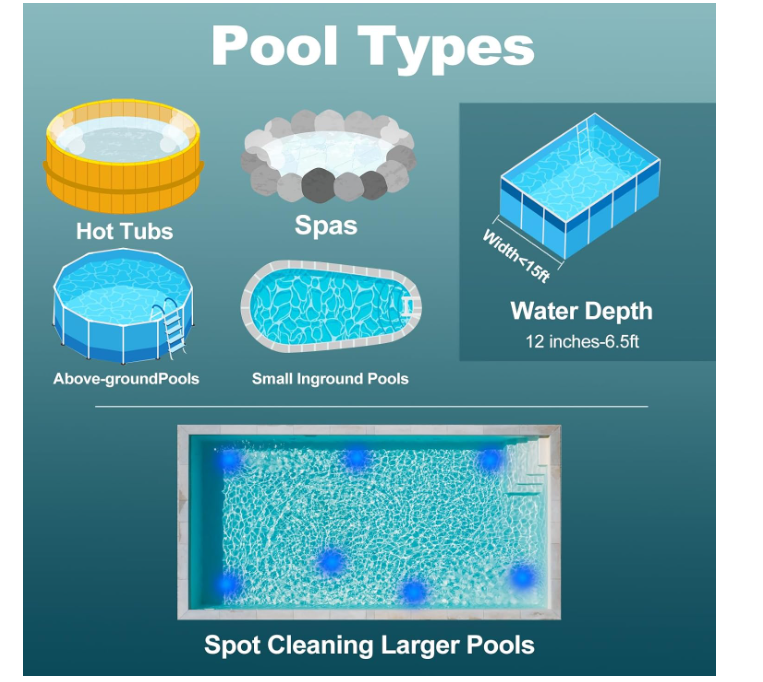 WIRELESS CHARGING FOR CONVENIENCE – The built-in lithium-ion battery ensures long-lasting performance with wireless charging. This cordless design allows easy cleaning of small above-ground pools, in-ground pools, spas, and hot tubs.