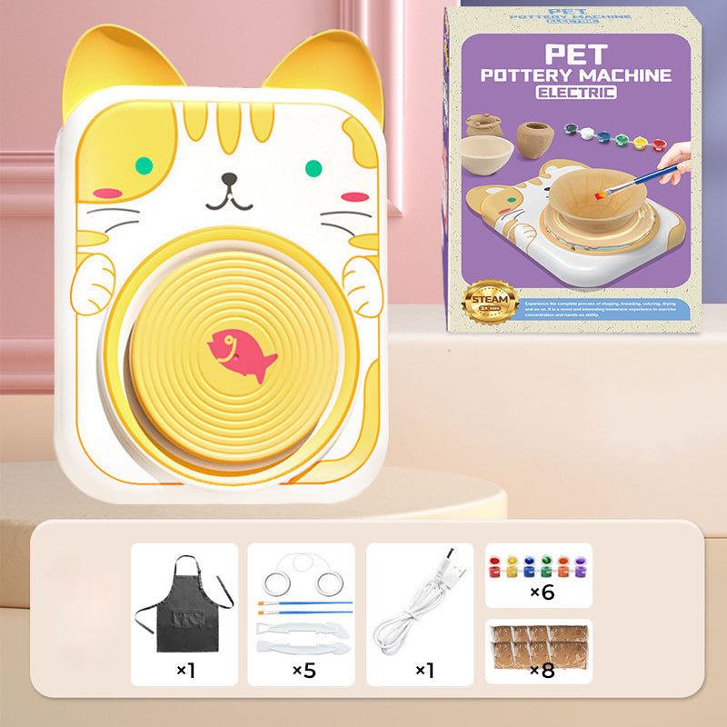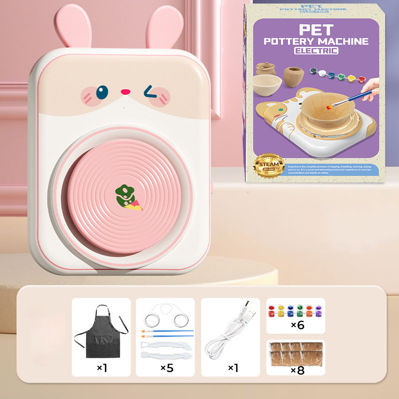 ADORABLE ANIMAL DESIGNS – Featuring cute cat, bunny, puppy, and cow styles, this pottery wheel makes crafting extra delightful! The simple design lets kids start creating instantly—no complicated setup needed. Includes everything for a complete experience.