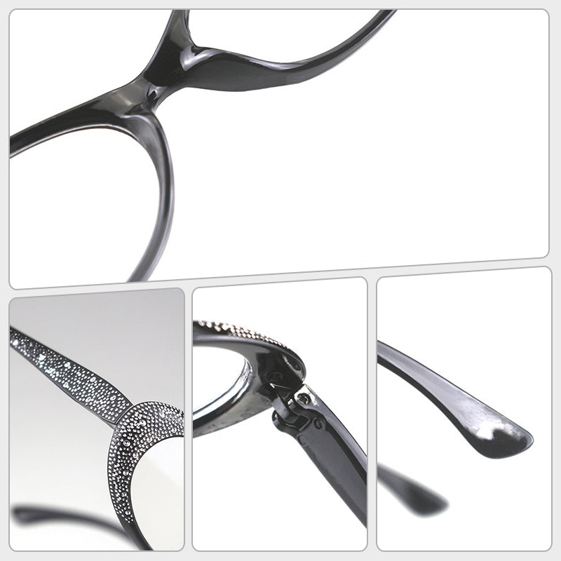 FASHIONABLE CAT EYE DESIGN: Featuring an elegant rhinestone charm on the sleek cat-eye frame, these glasses add a touch of glamour to your look while providing essential eye protection during work or reading.