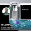 New design:Pop-up drain filter design subverts traditional and inconvenient drainage methods (such as basic plug with chain)! You can switch between the two modes, plug (water storage) and filter (water drainage), just by lightly pressing the top cover.