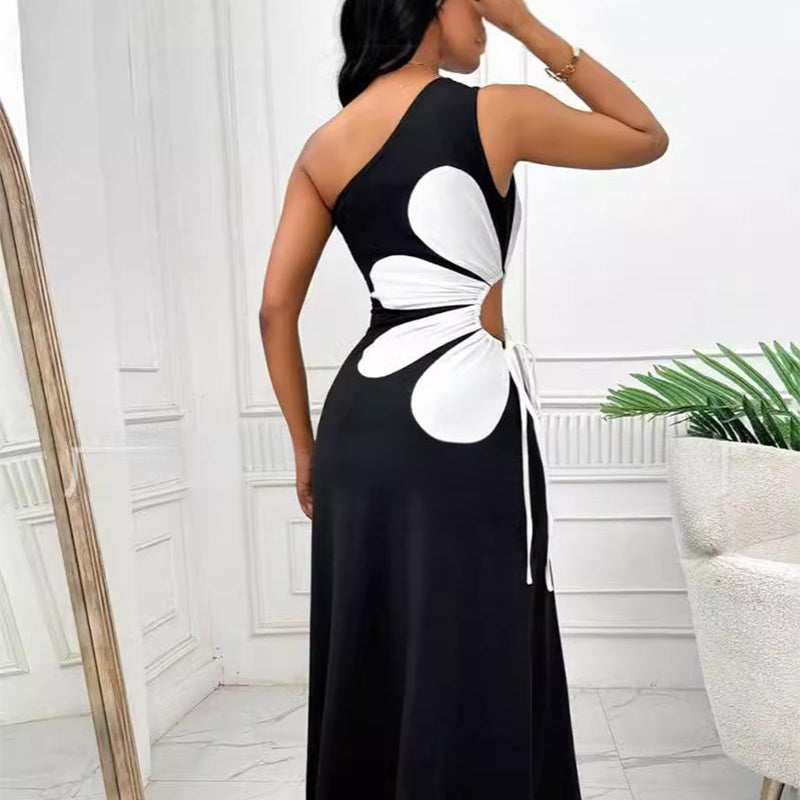 Package Includes: 1* Floral One Shoulder Slim A-line Dress