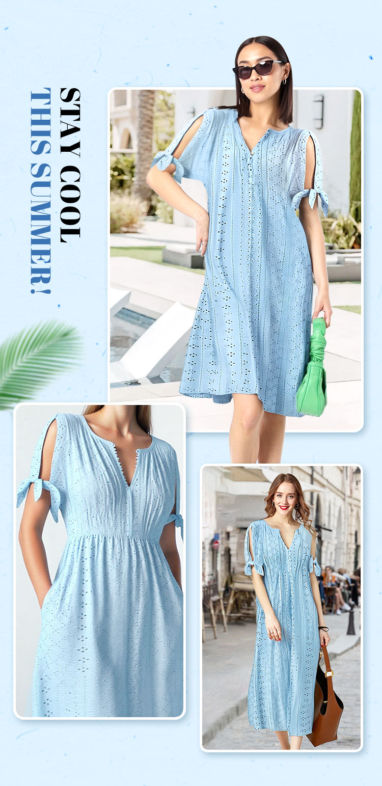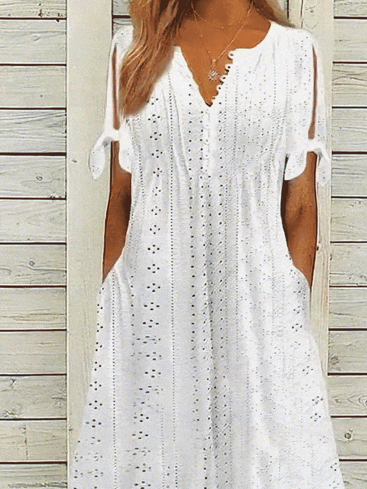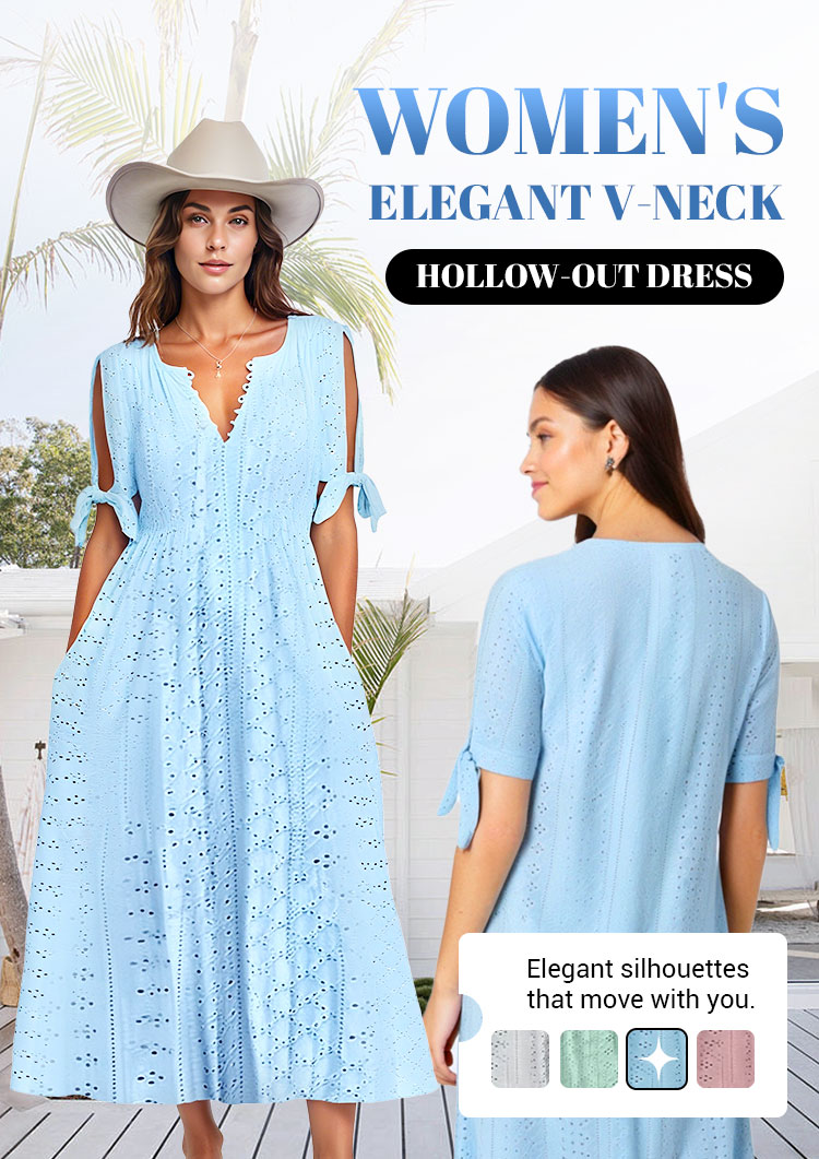 ⏰Last Day Sale 49% Off💃Women's Elegant V-Neck Hollow-Out Solid Dress