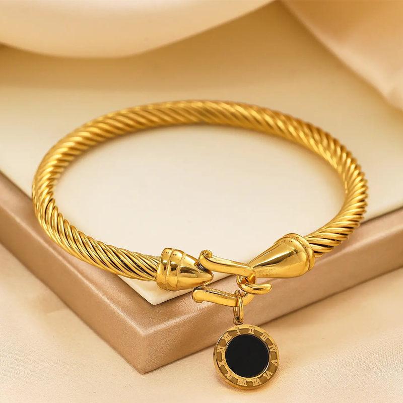 EXQUISITELY CARVED SPIRAL ROPE TEXTURE, TIMELESS ELEGANCE – This bracelet features a finely detailed spiral rope pattern that radiates craftsmanship and charm. The delicate texture catches the light beautifully, adding subtle dimension to your wrist and exuding quiet sophistication.
