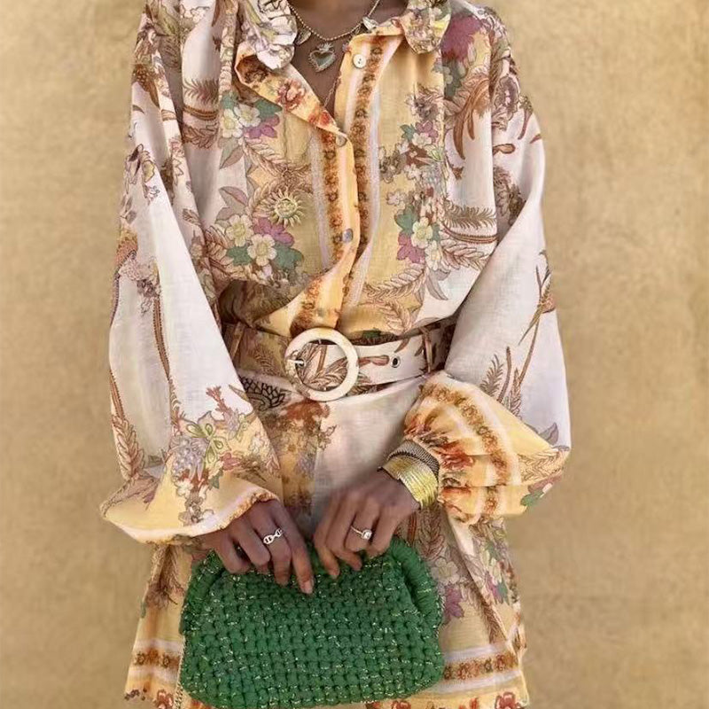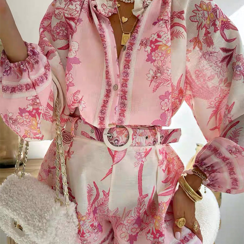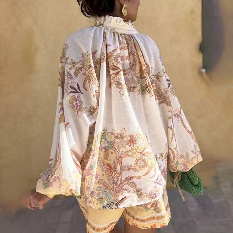 Package Included: 1 * Women’s Vintage Floral Print Top & Shorts Two-Piece Set