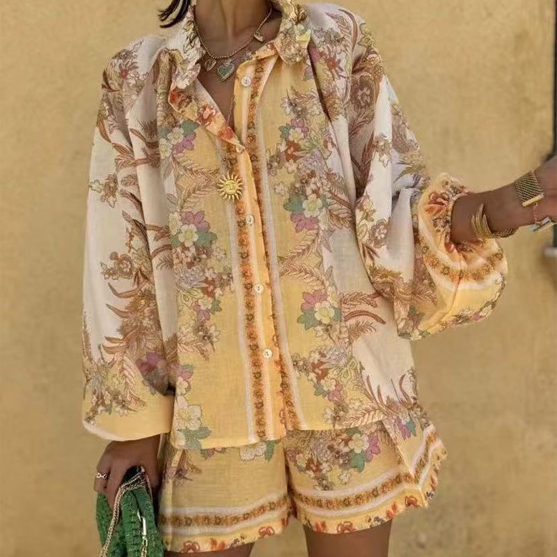 💐Women’s Vintage Floral Print Top & Shorts Two-Piece Set👕🩳
