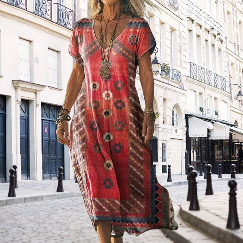 🌺Women's Printed V-Neck Short-Sleeve Long Dress✨