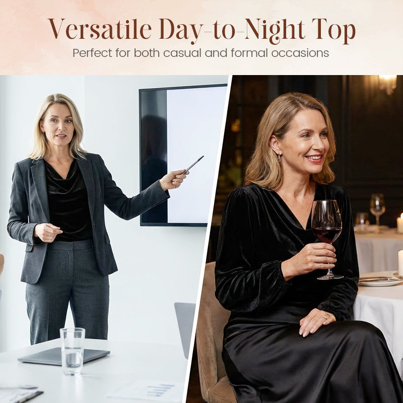 LUXURIOUS VELVET FABRIC: Made from soft, plush velvet, this top offers a rich texture and a subtle, attractive sheen. It provides exceptional comfort and warmth, making it perfect for cooler seasons.