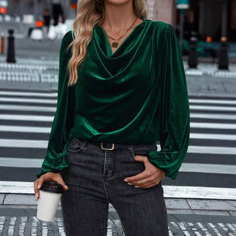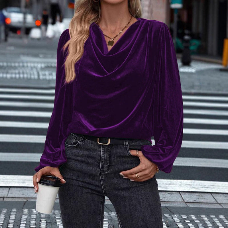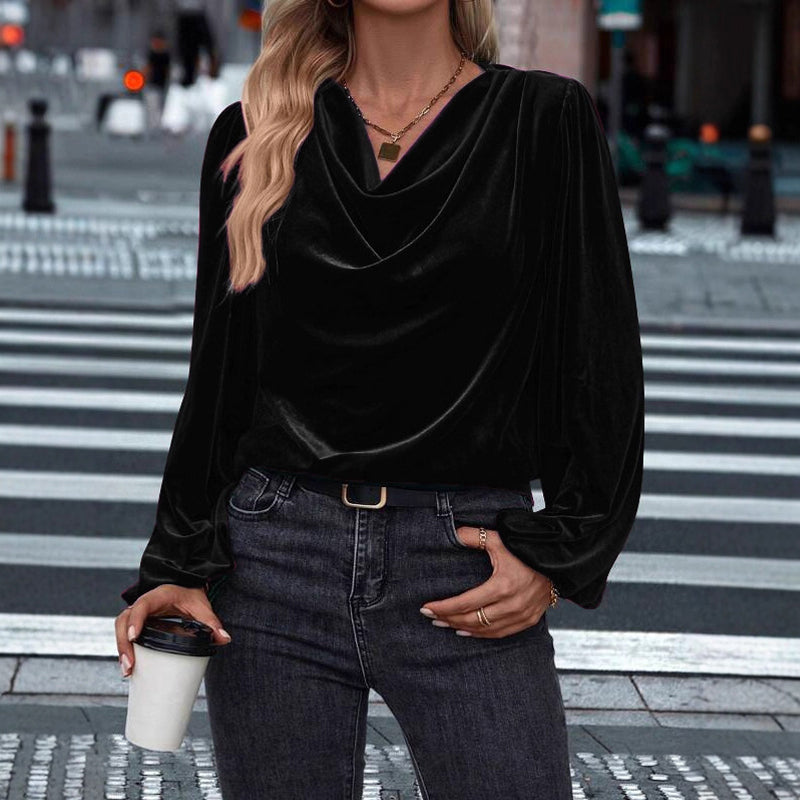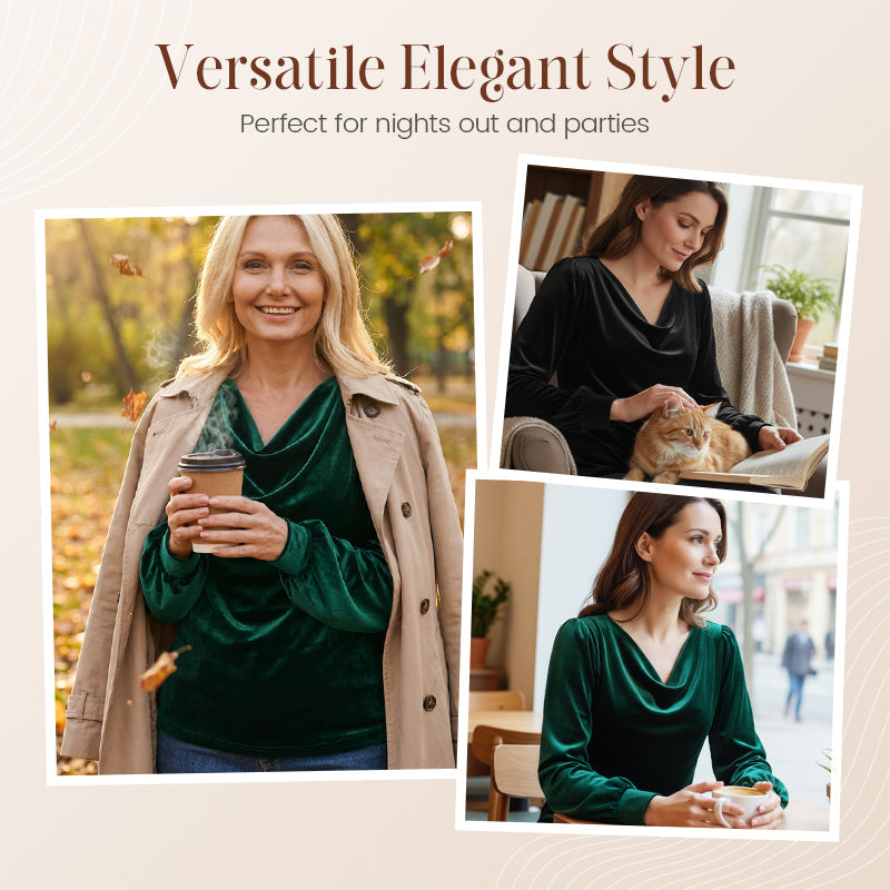 Women's Velvet Cowl Neck Long Sleeve Top