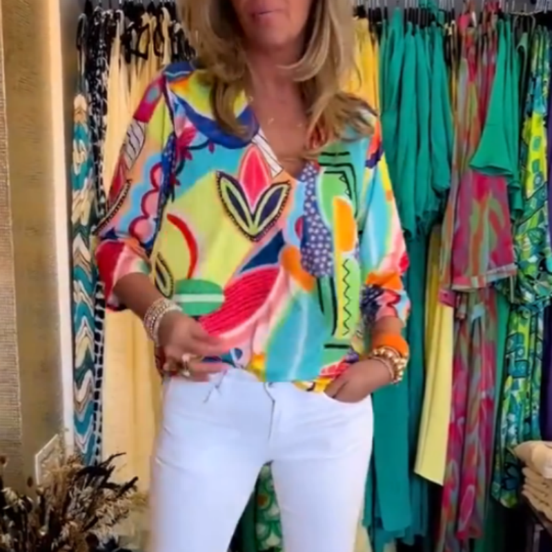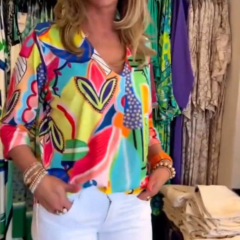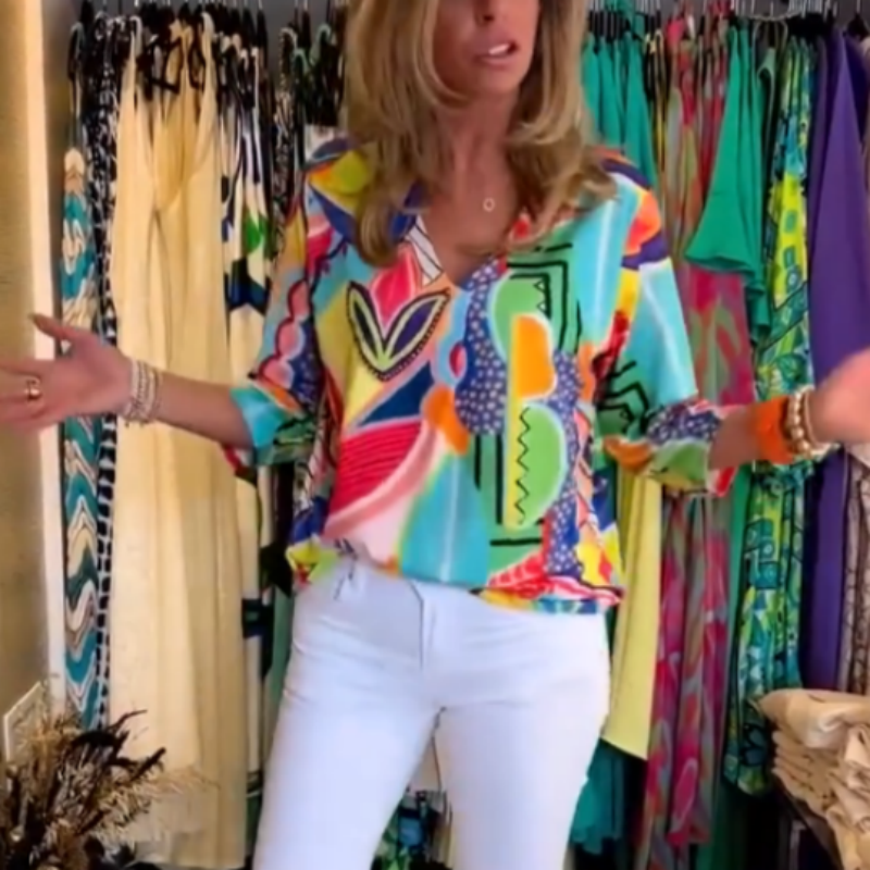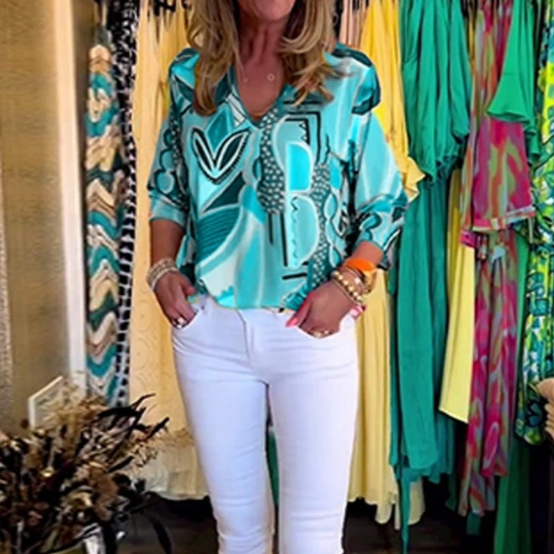 🎉2025 New Products Hot Sale✨Women's Casual Trendy Print V-Neck Top
