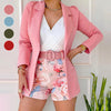 FLORAL PRINT SHORTS: Matching floral print shorts are the perfect complement to the blazer, offering a playful, feminine touch. The shorts feature a wide belt in the same color and a flattering, relaxed fit.