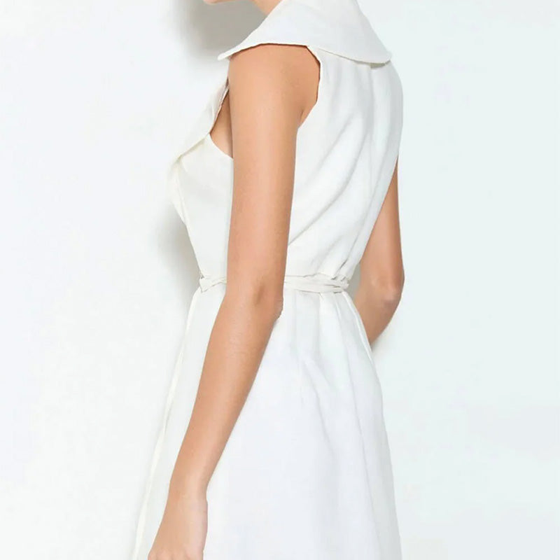 FULL-LENGTH PANTS – These solid white pants reach the ankles, offering full-length coverage and a crisp, clean appearance. The tailored cut complements the top to create a coordinated, modern look while the pure white tone adds a fresh, versatile quality that pairs effortlessly with various accessories and settings.