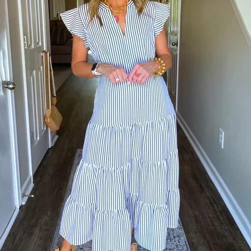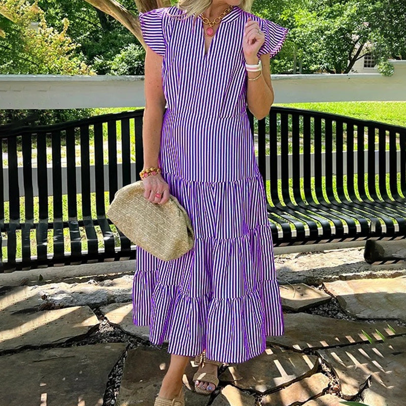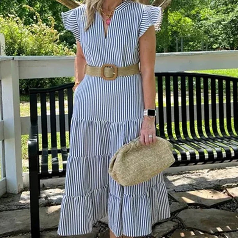 🎀Women’s Striped Tiered Ruffle Midi Dress💃